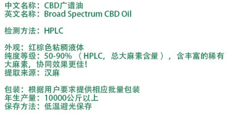 | 英文名稱(chēng) | Broad Spectrum Cannabidiol Oil |