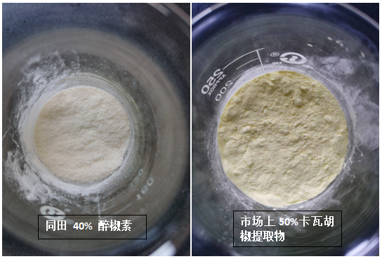 上海同田生物40%醉椒素(卡瓦胡椒提?。┡c市場50%卡瓦胡椒提取物對比: