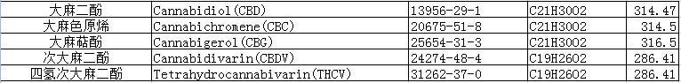 | 中文別名 | 大麻色原烯;大麻素 |